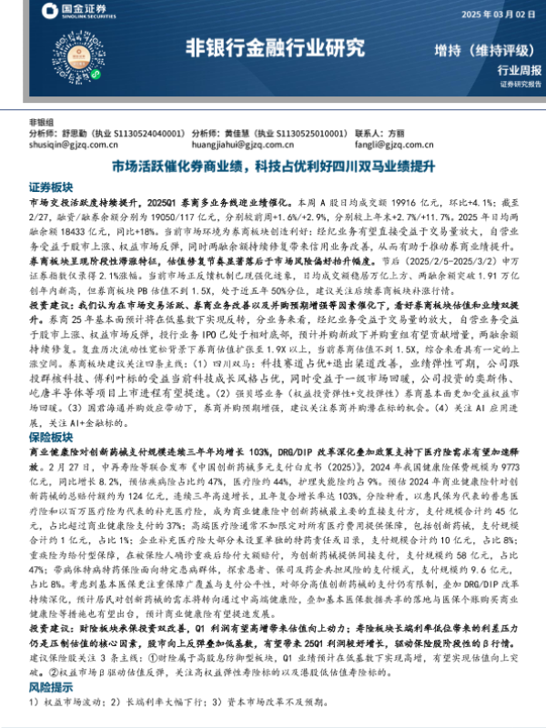 【国金证券】【20250302】非银行金融行业研究:市场活跃催化券商业绩,科技占优利好四川双马业绩提升-11页 行业研究