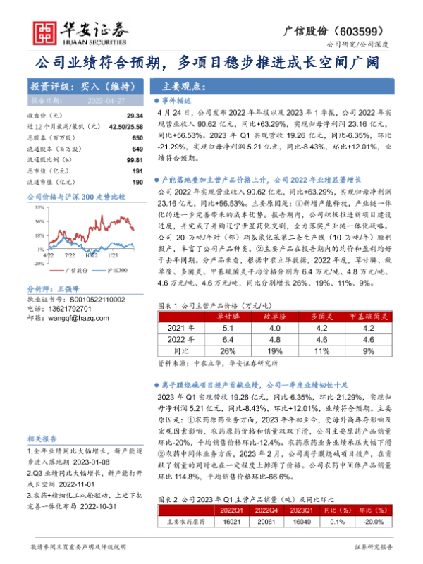 【华安证券】【20230427】广信股份-603599.SH-公司业绩符合预期,多项目稳步推进成长空间广阔-20页 行业研究