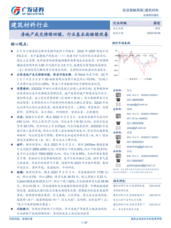 【广发证券】【20230305】建筑材料行业投资策略周报:房地产成交持续回暖,行业基本面继续改善-27页 行业研究