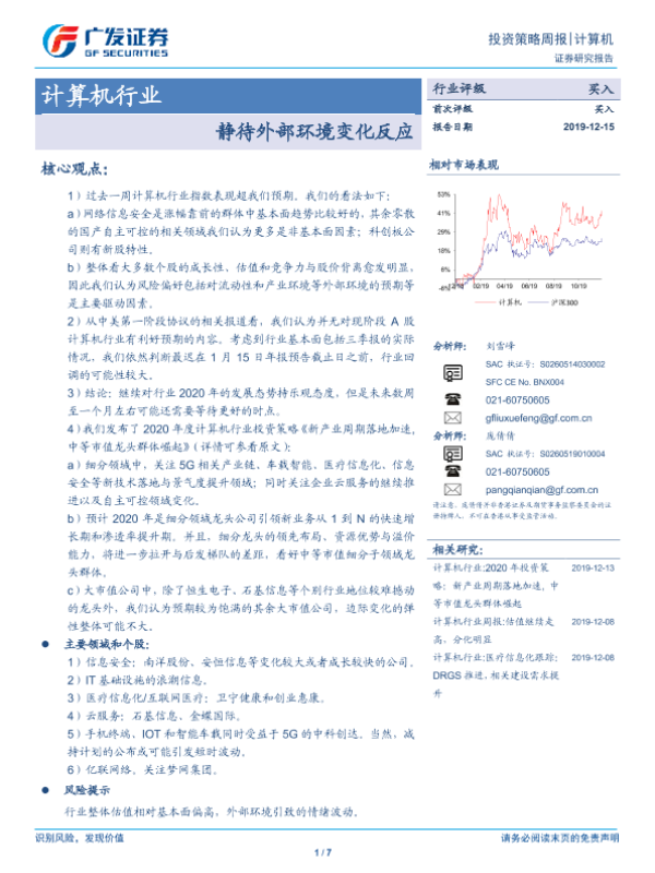 【广发证券】【20191215】20191215-广发证券-计算机行业投资策略周报:静待外部环境变化反应-7页 行业研究