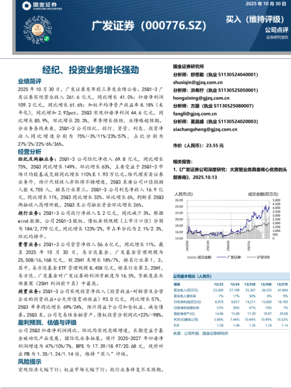 【国金证券】【202510】经纪、投资业务增长强劲-4页 证券期货研究报告