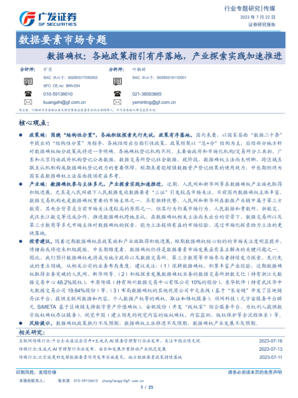 【广发证券】【20230722】传媒数据要素市场专题:数据确权:各地政策指引有序落地,产业探索实践加速推进-25页 行业研究