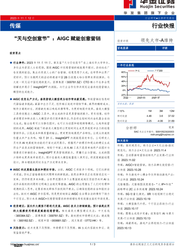 【华金证券】【20231112】传媒:“天与空创意节”:AIGC赋能创意营销-3页 行业研究
