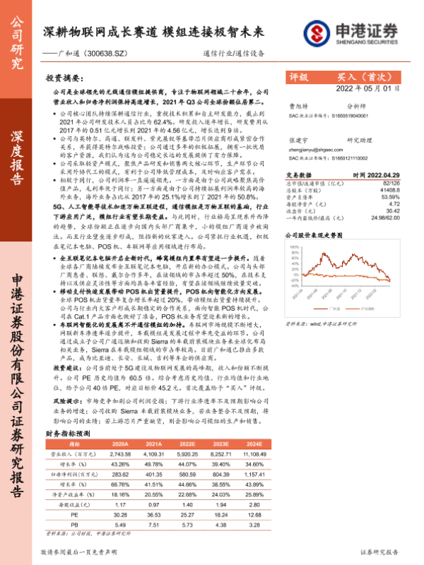 【申港证券】【20220501】深耕物联网成长赛道 模组连接极智未来——广和通(300638.SZ)-29页 行业研究