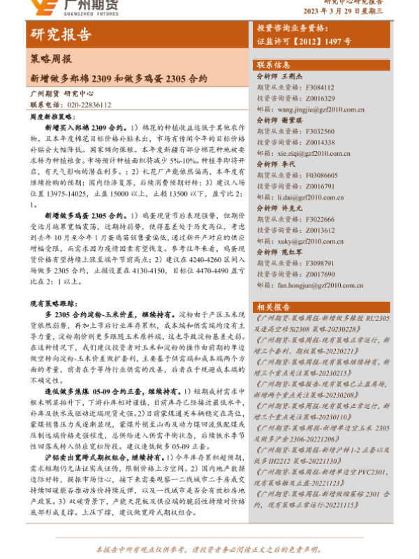 【广州期货】【20230329】20230329-广州期货-策略周报_新增做多郑棉2309和做多鸡蛋2305合约-16页 行业研究