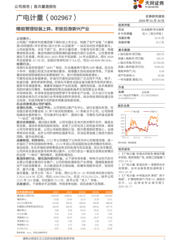 【天风证券】【20250120】广电计量-精细管理轻装上阵,积极投身新兴产业-27页 行业研究