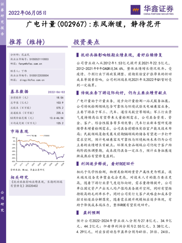 【华鑫证券】【20220605】广电计量(002967) 东风渐暖,静待花开-55页 行业研究