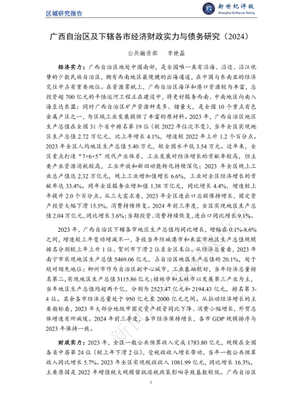 【新世纪评级】【2024】广西自治区及下辖各市经济财政实力与债务研究(2024)-32页 行业研究