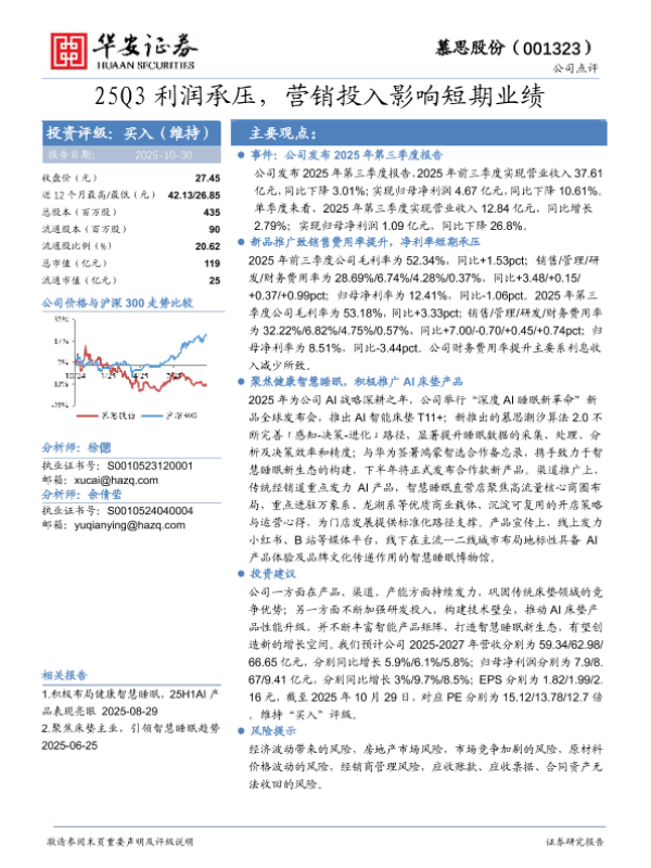 【华安证券】【202510】25Q3利润承压,营销投入影响短期业绩-4页 证券期货研究报告