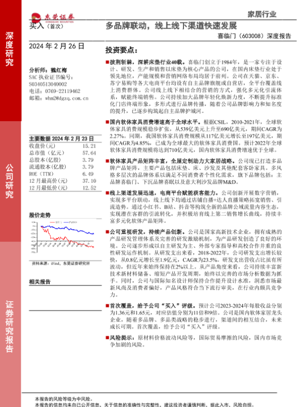 【东莞证券】【20240226】20240226-东莞证券-喜临门-603008.SH-深度报告:多品牌联动,线上线下渠道快速发展-21页 行业研究