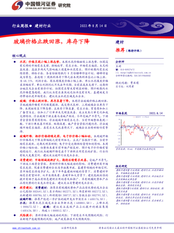 【银河证券】【20220814】建材行业行业周报:玻璃价格止跌回涨,库存下降-13页 行业研究