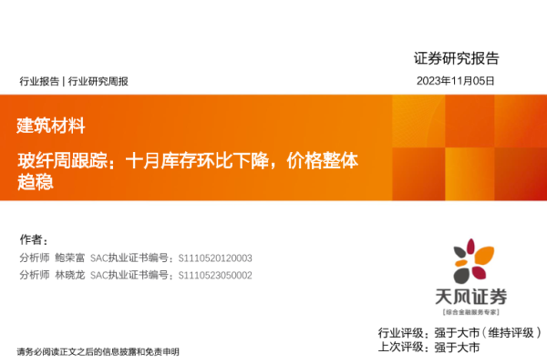 【天风证券】【20231105】玻纤周跟踪:十月库存环比下降,价格整体趋稳-19页 行业研究