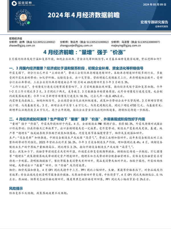 【国金证券】【20240509】2024年4月经济数据前瞻:“量增”强于“价涨”-24页 行业研究