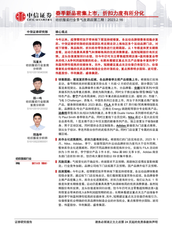 【中信证券】【20230216】纺织服装行业景气度跟踪第二期:春季新品密集上市,折扣力度有所分化-25页 行业研究
