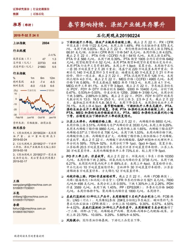 【海通证券】【20190224】石化周观点:春节影响持续,涤丝产业链库存攀升-18页 行业研究