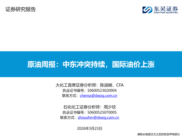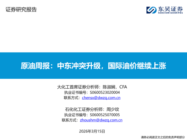 【东吴证券】【202603】原油周报:中东冲突升级,国际油价继续上涨-59页 证券期货研究报告