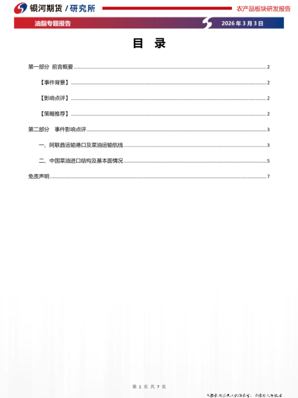 【银河期货】【202603】中东地缘冲突升级对菜油的影响-7页 证券期货研究报告