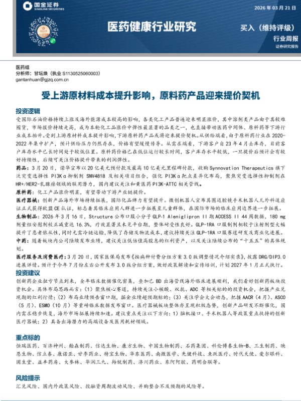 【国金证券】【202603】受上游原材料成本提升影响,原料药产品迎来提价契机-17页 证券期货研究报告