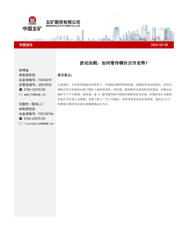 【五矿期货】【202603】波动加剧,如何看待锡价后市走势?-4页 证券期货研究报告