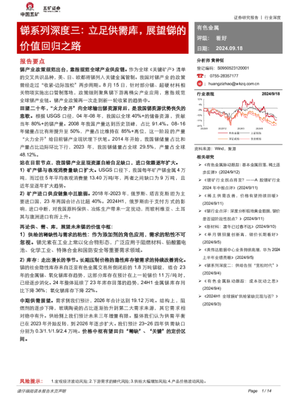 【五矿证券】【20240918】有色金属行业锑系列深度三:立足供需库,展望锑的价值回归之路-14页 行业研究