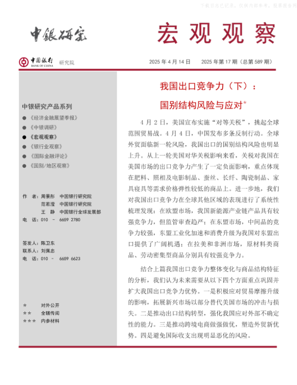 【中国银行研究院】【20250414】我国出口竞争力(下):国别结构风险与应对-15页 宏观策略