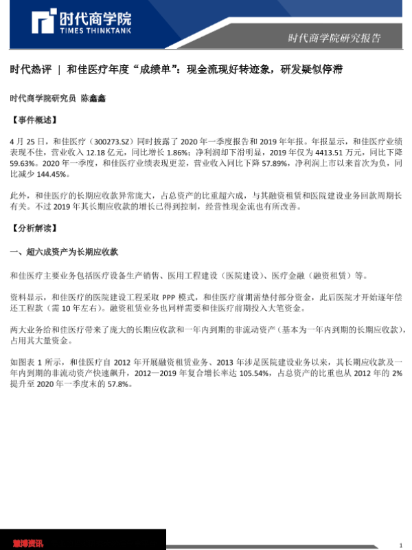 【时代商学院】【20200508】和佳医疗年度“成绩单”:现金流现好转迹象,研发疑似停滞-5页 行业研究