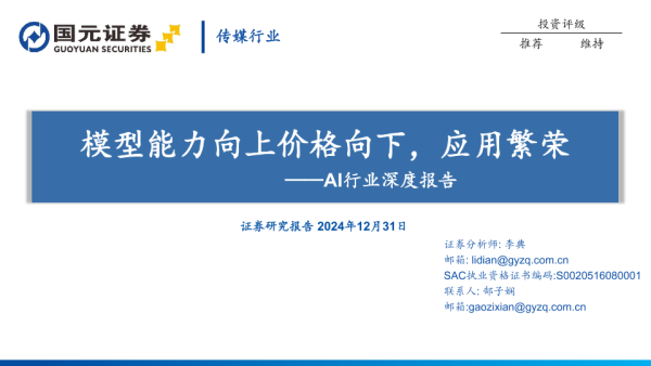 【国元证券】【20241231】AI行业深度报告:模型能力向上价格向下,应用繁荣-30页 行业研究