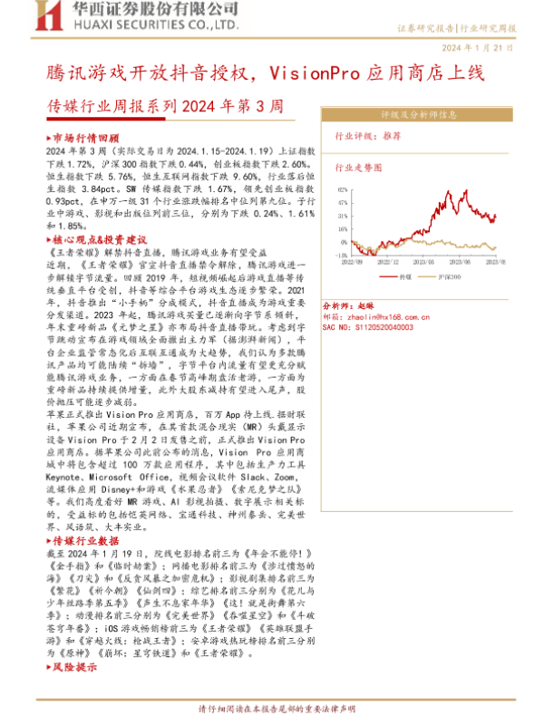 【华西证券】【20240121】腾讯游戏开放抖音授权,VisionPro应用商店上线-37页 行业研究