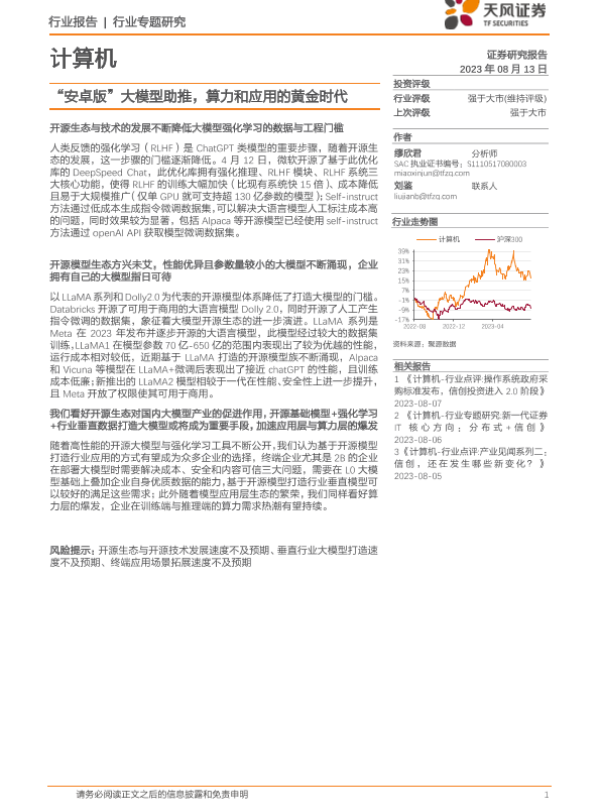 【天风证券】【20230813】“安卓版”大模型助推,算力和应用的黄金时代-13页 行业研究