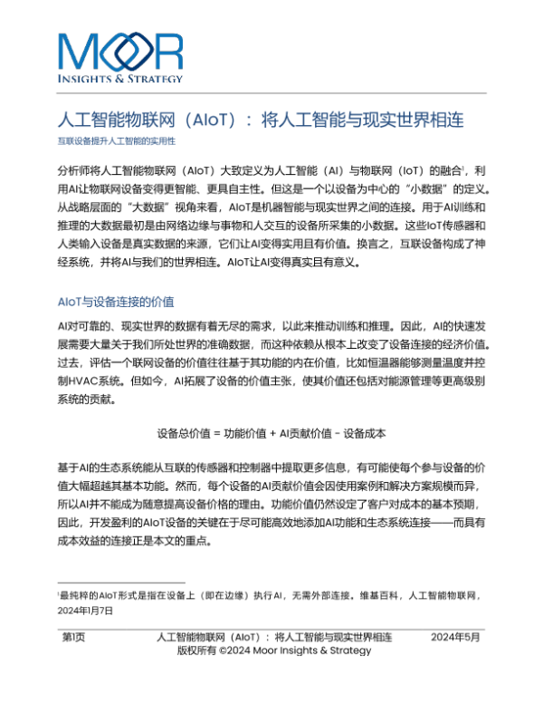 【Moor Insights & Strategy】【202405】2025年人工智能物联网(AIoT):将人工智能与现实世界相连白皮书-15页 白皮书