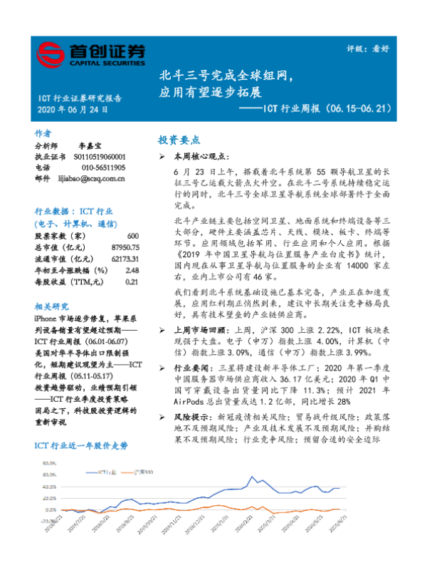 【首创证券】【20200624】20200624-首创证券-ICT行业周报:北斗三号完成全球组网,应用有望逐步拓展-13页 行业研究