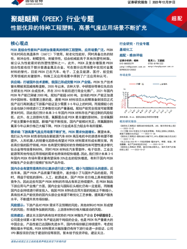 【国信证券】【20231229】聚醚醚酮(PEEK)行业专题:性能优异的特种工程塑料,高景气度应用场景不断扩充-31页 行业研究
