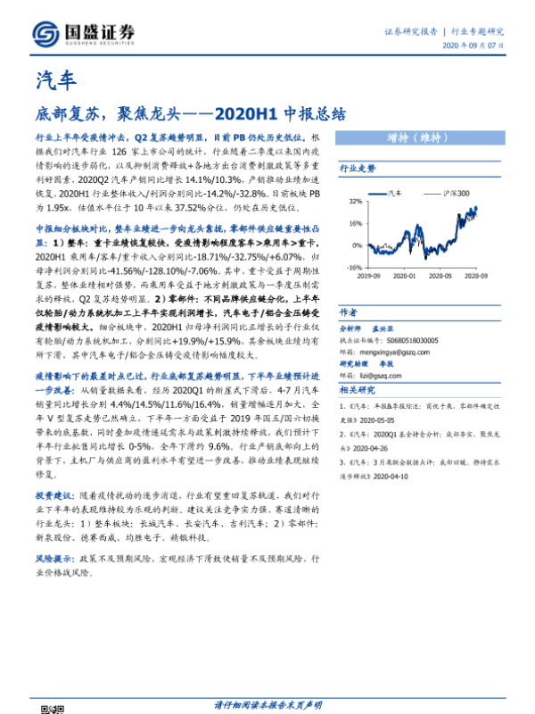 【国盛证券】【20200907】底部复苏,聚焦龙头——2020H1中报总结-27页 行业研究
