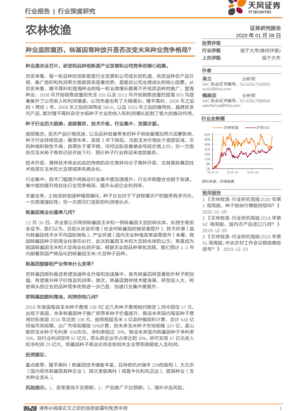 【天风证券】【20200108】农林牧渔行业深度研究:种业底部复苏,转基因育种放开是否改变未来种业竞争格局?-25页 行业研究