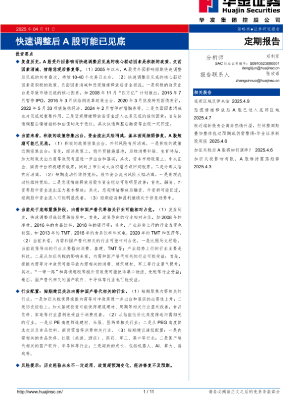 【华金证券】【20250411】快速调整后,A股可能已见底-11页 证券期货研究报告