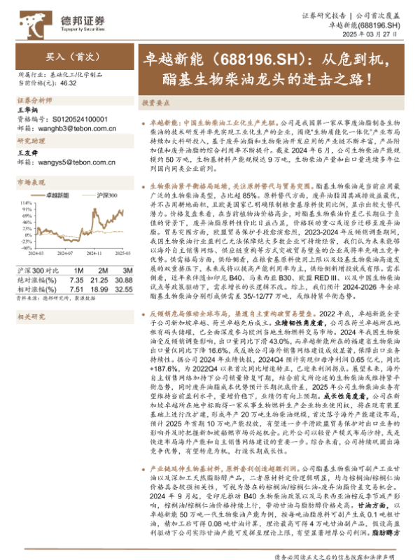 【德邦证券】【20250327】从危到机,酯基生物柴油龙头的进击之路!-30页 行业研究