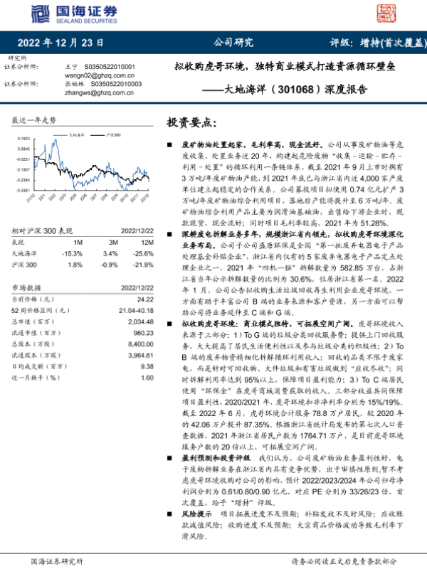 【国海证券】【20221223】拟收购虎哥环境,独特商业模式打造资源循环壁垒-37页 行业研究