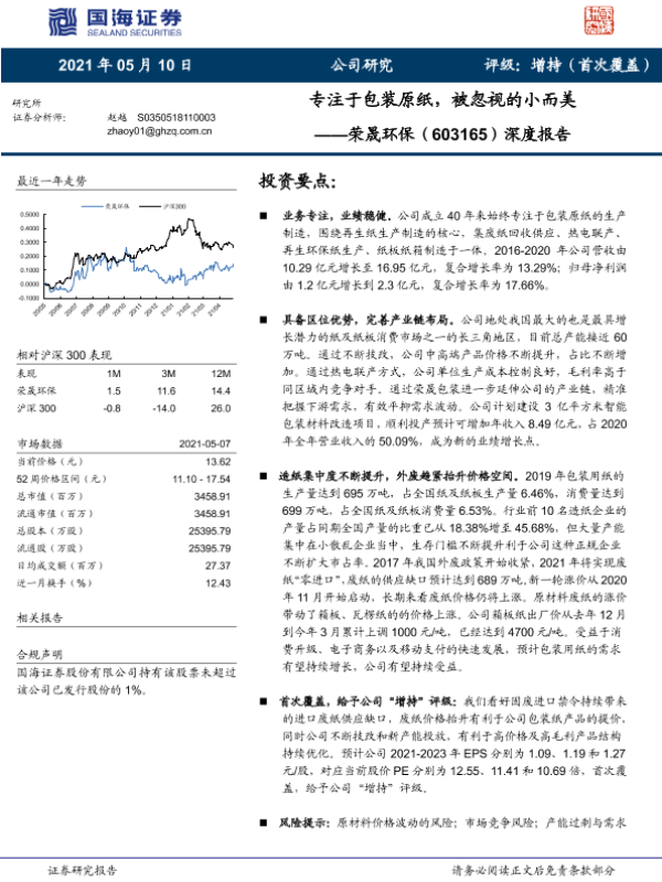 【国海证券】【20210510】20210510-国海证券-荣晟环保-603165.SH-深度报告:专注于包装原纸,被忽视的小而美-18页 行业研究