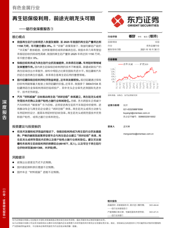 【东方证券】【20211030】铝行业深度报告③:再生铝保级利用,前途光明龙头可期-22页 行业研究