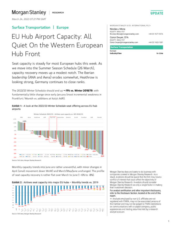 【Morgan Stanley】【20230324】EU Hub Airport Capacity All Quiet On the Western European Hub Front-14页 行业研究