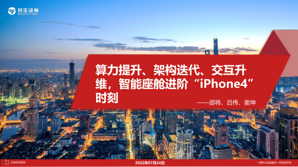 【民生证券】【20220724】算力提升、架构迭代、交互升维,智能座舱进阶“iPhone4”时刻-108页 行业研究