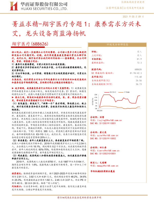 【华西证券】【20210509】翔宇医疗专题1:康养需求方兴未艾,龙头设备商蓝海扬帆-20页 公司研究