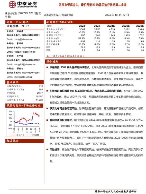 【中泰证券】【20240812】康弘药业(002773)眼底血管病龙头,康柏西普HD和基因治疗推动第二曲线-30页 行业研究