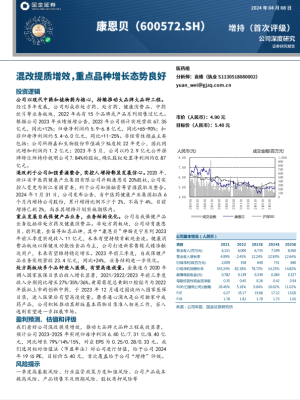 【国金证券】【20240408】康恩贝-600572.SH-混改提质增效,重点品种增长态势良好-22页 行业研究