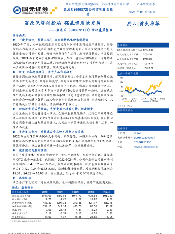 【国元证券】【20230316】混改优势创新局强基提质快发展——康恩贝(600572.SH)首次覆盖报告-22页 证券期货研究报告
