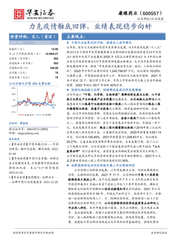 【德邦证券】【20221123】康缘药业(600557)传承中药,守正创新-33页 行业研究