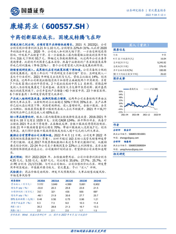 【开源证券】【20221019】康缘药业-600557.SH-公司首次覆盖报告:创新引领发展,注射焕发生机,基药驱动新增长-32页 行业研究