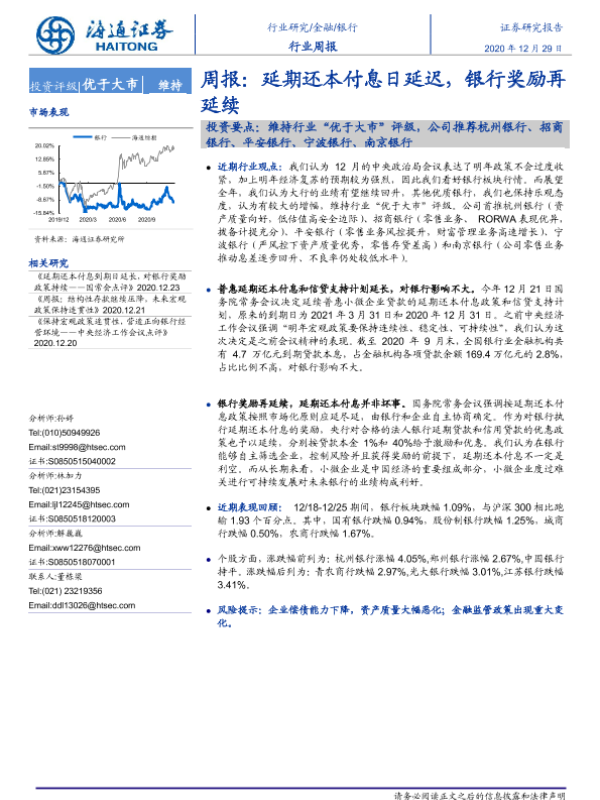 【海通证券】【20201229】银行周报:延期还本付息日延迟,银行奖励再延续-8页 行业研究