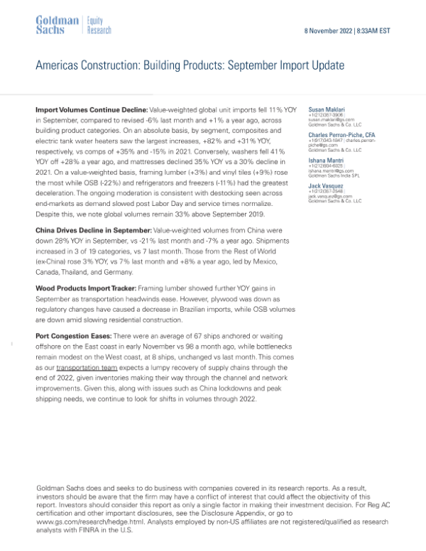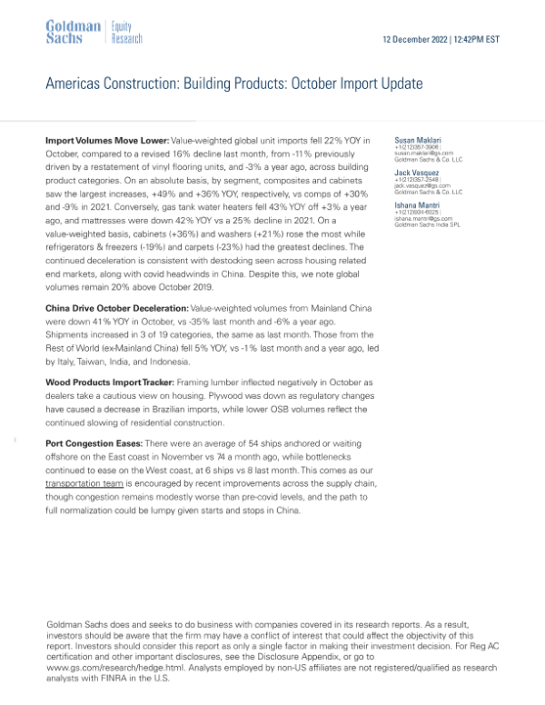 【Goldman Sachs】【20221212】Americas Construction Building Products October Import Update-17页 行业研究