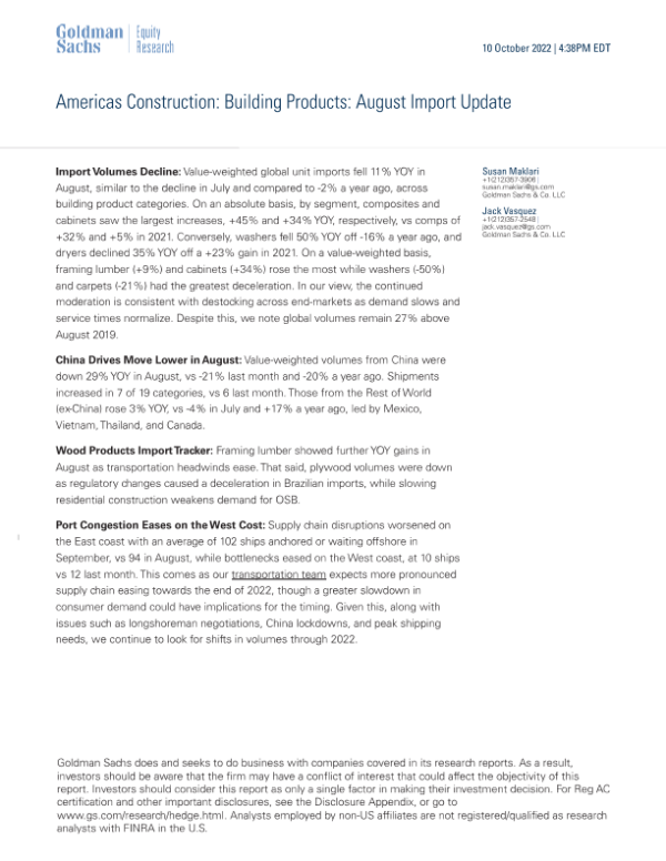 【Goldman Sachs】【20220912】Americas Construction Building Products July Import Update-17页 行业研究